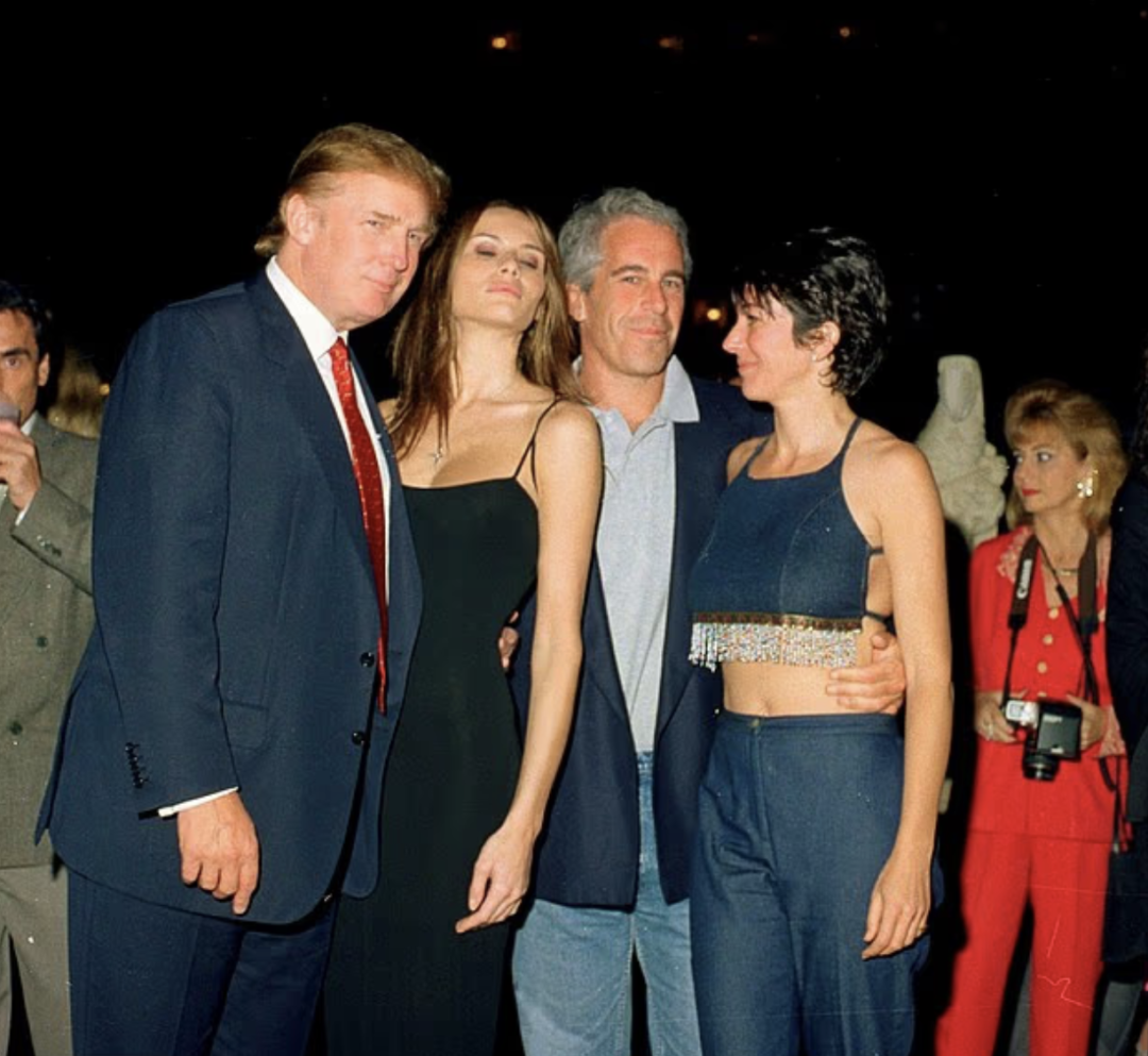 (2000年,川普和梅拉尼娅、爱泼斯坦和麦克斯维尔)