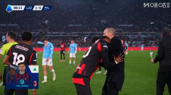 今天凌晨,AC米兰在客场0-1不敌拉齐奥,比赛第66分钟,阿莱格里决定用恩昆库换下莱奥。